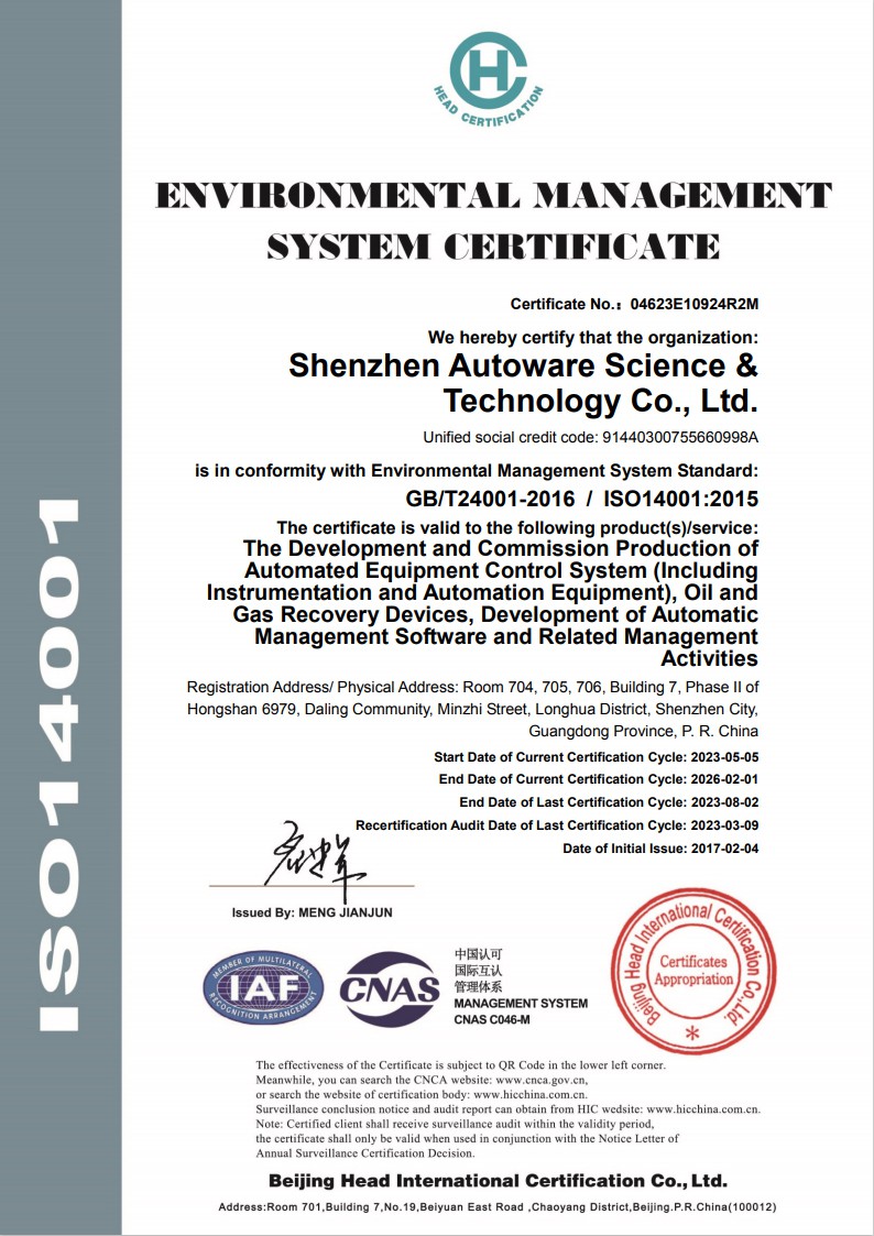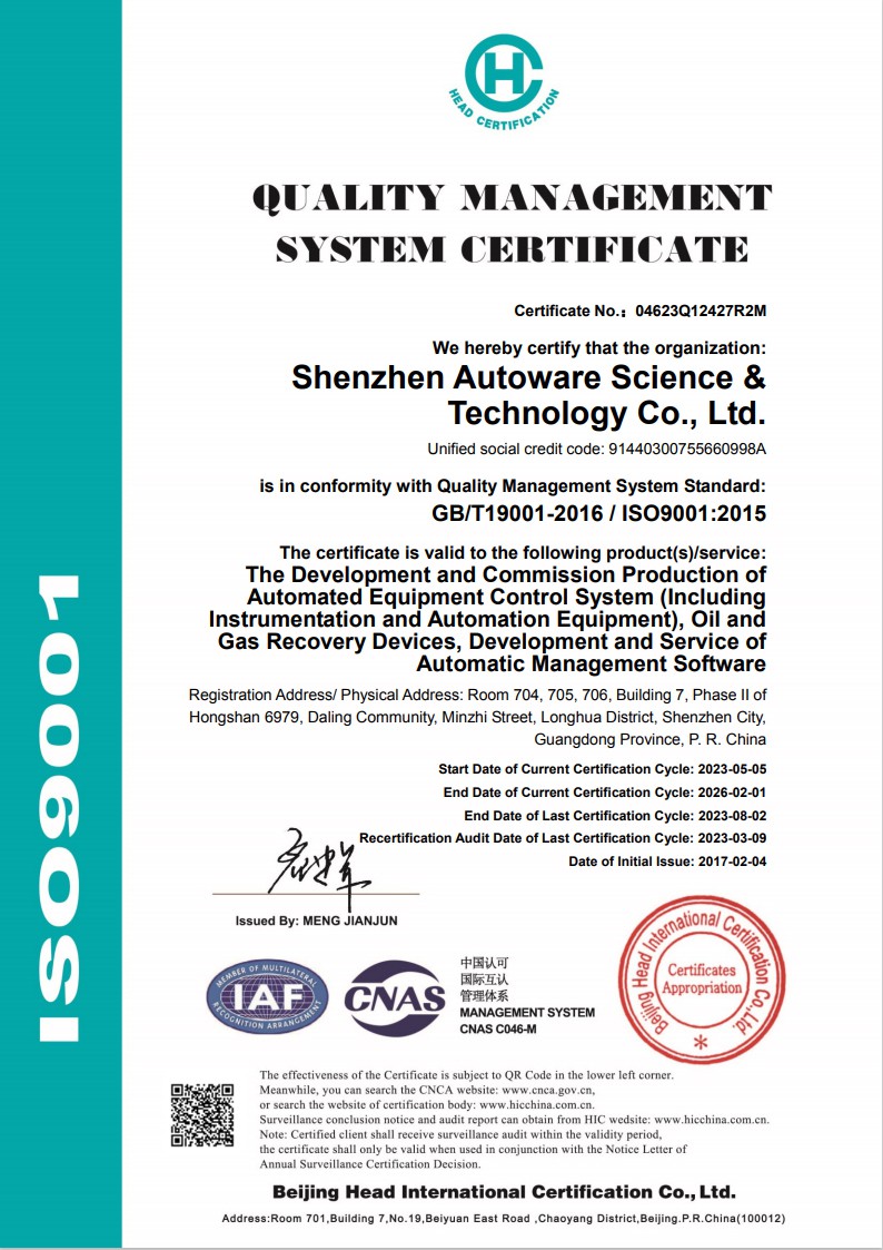 Autower és una empresa d'empresa de crèdit de nivell 3A-a Shenzhen, va rebre el títol d'empresa d'honor i crèdit de contracte de la província de Guangdong-. La nostra empresa ha aprovat el sistema de gestió de qualitat ISO9001, el sistema de gestió de la salut laboral GB/T28001 i la certificació del sistema de gestió ambiental ISO14001 i ha obtingut 6 drets d'autor de programari d'emmagatzematge de líquids, més de 20 patents pràctiques d'invenció de productes.